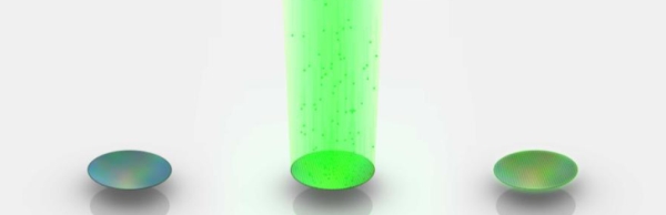 İşlemci zarı elde edilecek wafer, fotolitografi kullanılarak kalıplara ayrılır. Wafer, artı veya eksi yüklü iyonlar içeren ışın bombardımana tutulur. İyonlar, kendilerini wafer yüzeyinin altına, seçili lokasyonlardaki silikonun iletken özelliklerinde değişiklik yapmak üzere gömerler. Resimde görülen yeşil bölgeler, doğru şekilde uygulanmış aylan atomlarını göstermekte.